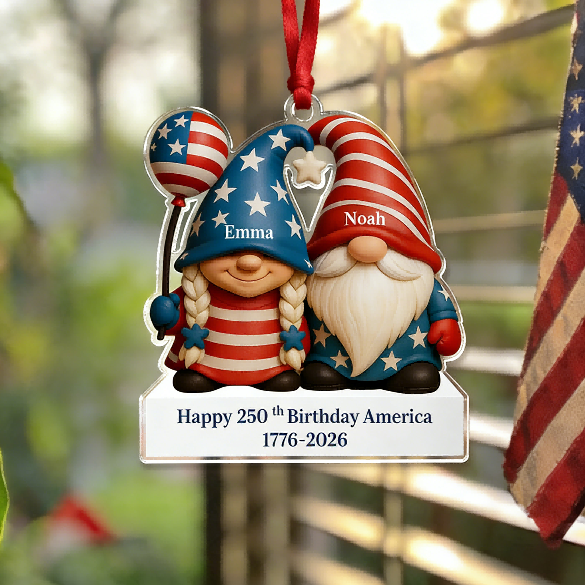 Mark a historic milestone with this Couple’s 250th Anniversary American Ornament, beautifully merging your love story with America’s 250th birthday (1776–2026). Featuring patriotic motifs like eagles, stars, and the iconic dates, this custom acrylic ornament can be personalized with your names—honoring your journey together during this monumental national celebration.