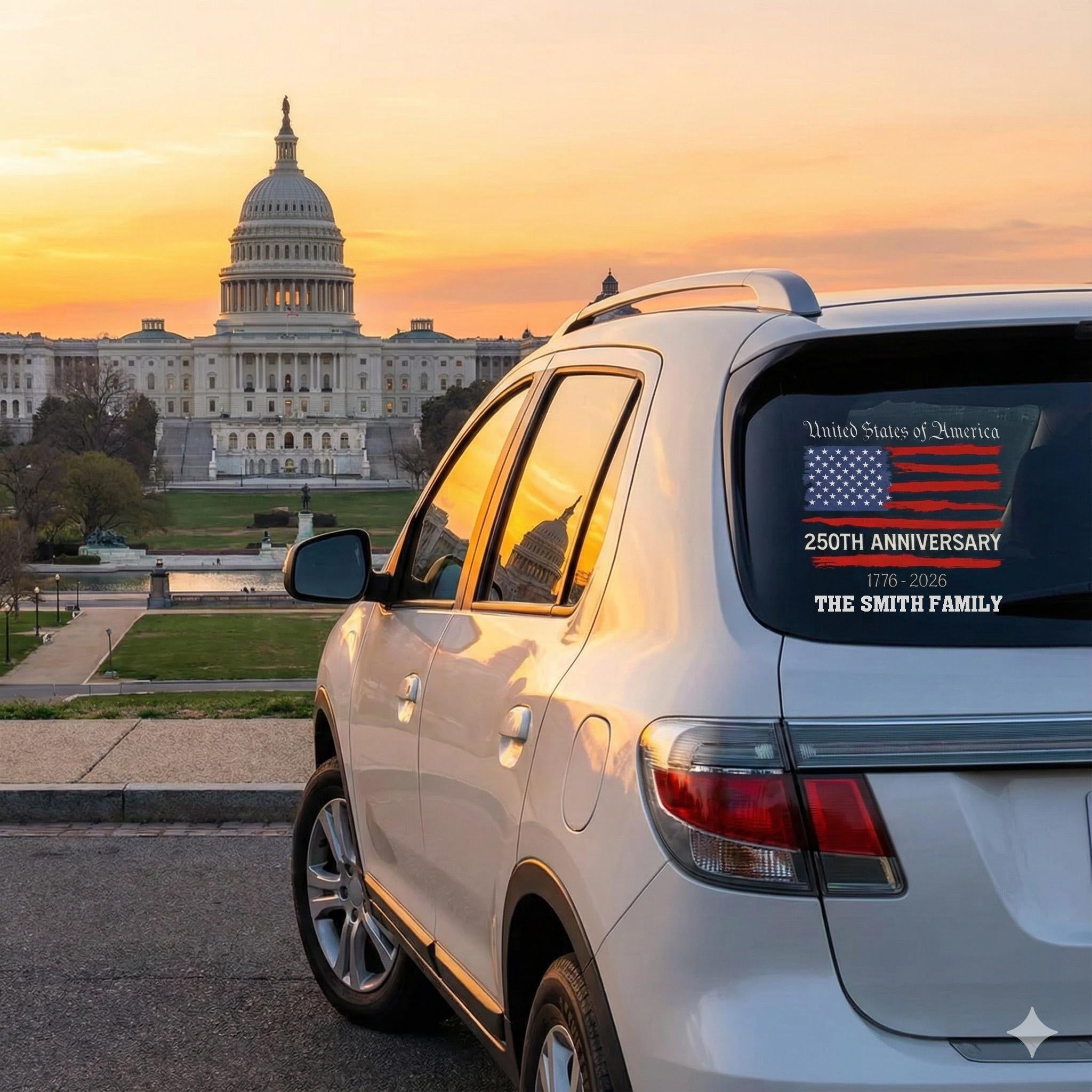 Honor America's 250th Anniversary with this versatile personalized decal sticker featuring your family name. Beyond traditional car window displays, this adhesive sticker works beautifully on refrigerators, laptops, water bottles, and any smooth surface you choose. The durable design withstands daily wear while maintaining vibrant colors that celebrate your patriotic pride. Customize it with your family name to create a unique keepsake that blends historical significance with personal meaning. Perfect for decorating your home, vehicle, or gifting to loved ones who share your American spirit. A flexible way to commemorate this historic milestone wherever it matters most to you.✨