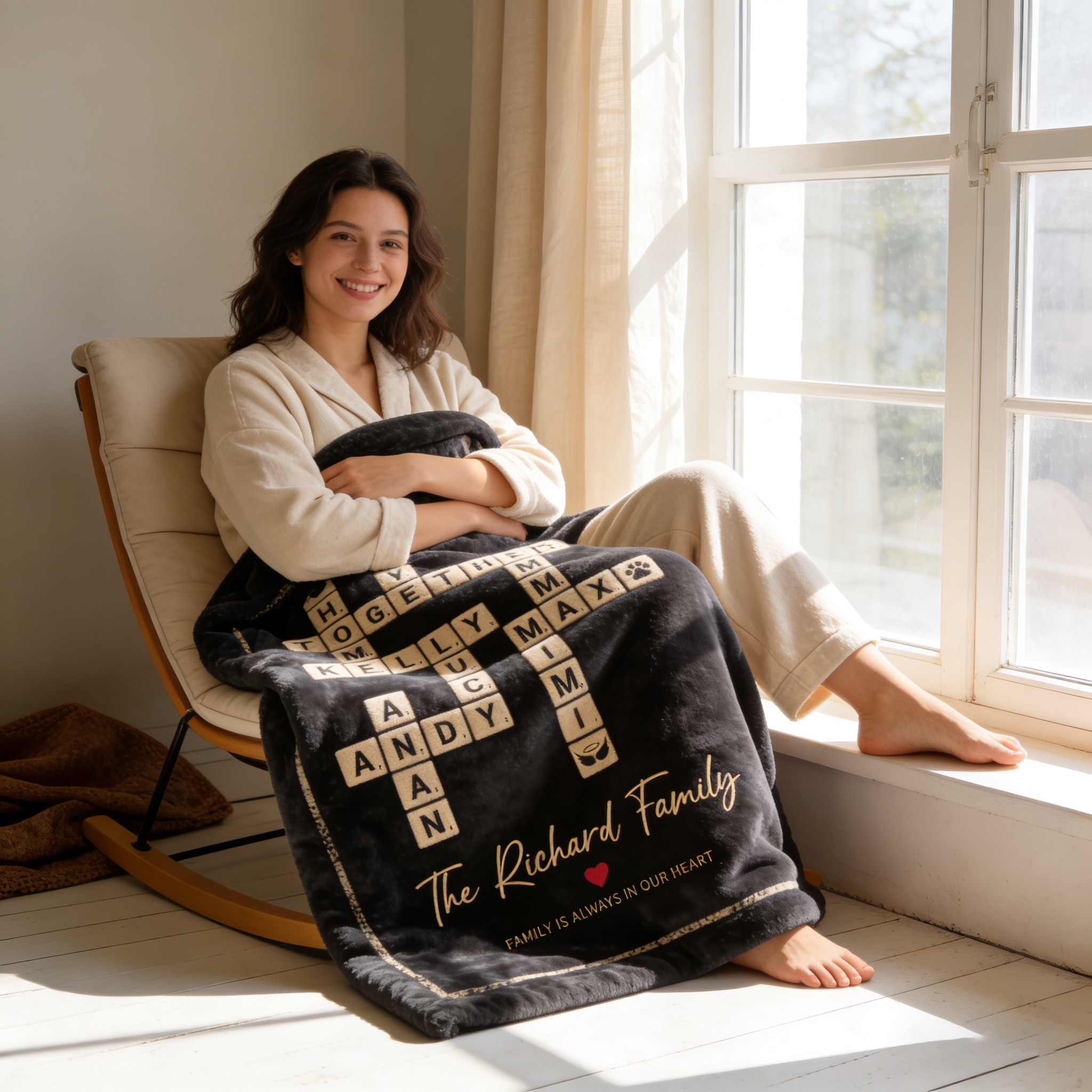 Meet your new favorite family heirloom ❤️. The Custom Crossword Family Names Blanket is more than just a cozy throw; it’s a unique tapestry of your loved ones, woven into a beautiful and personalized crossword design. 🧶