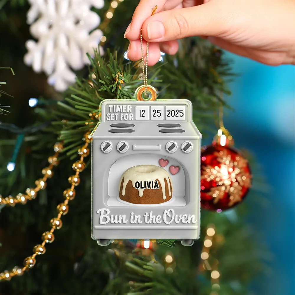 Add a touch of fun to the pregnancy journey with this "Bun In The Oven" personalized acrylic ornament. Perfect as a playful gift for expecting parents, it captures the excitement of awaiting a new arrival. Customize it to create a sweet keepsake that celebrates this special moment with charm and smiles.❤️