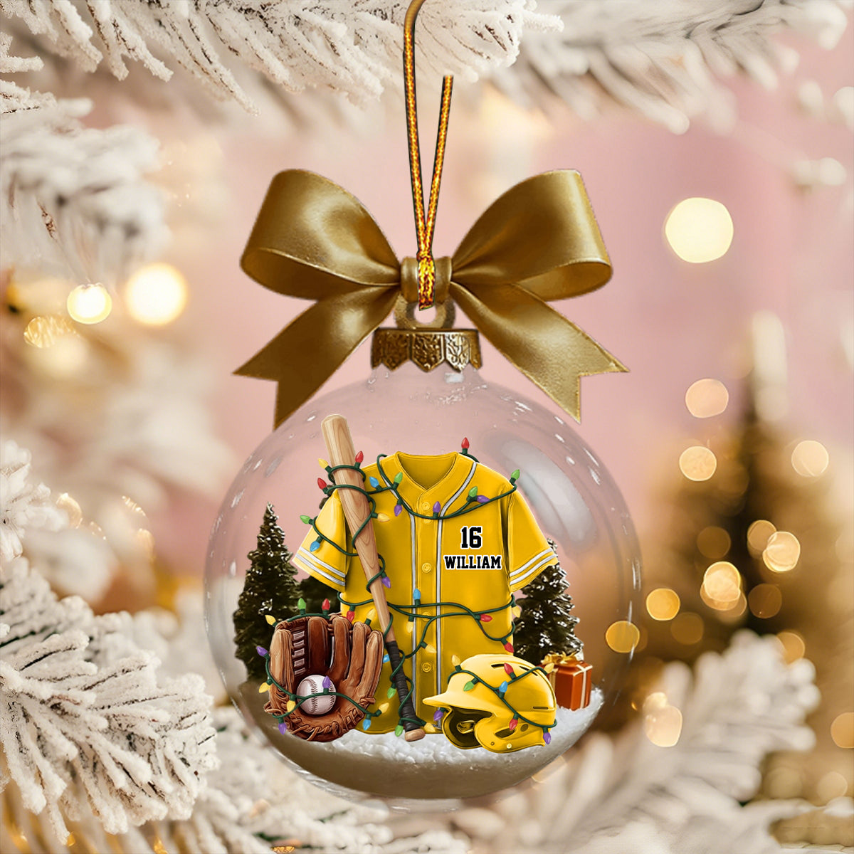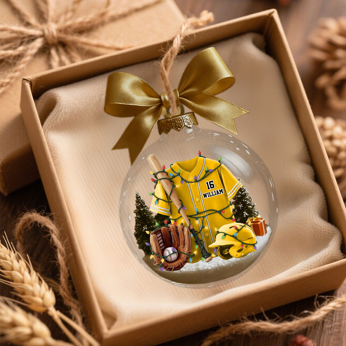 Celebrate a love of baseball with this personalized Christmas ornament featuring a classic shirt, helmet & gloves. Add a name or year to create a unique keepsake for players, fans & families.⚾ Crafted with attention to detail, it makes for a unique decoration or special keepsake. Show your love and support for the sport with this personalized ornament!🥳