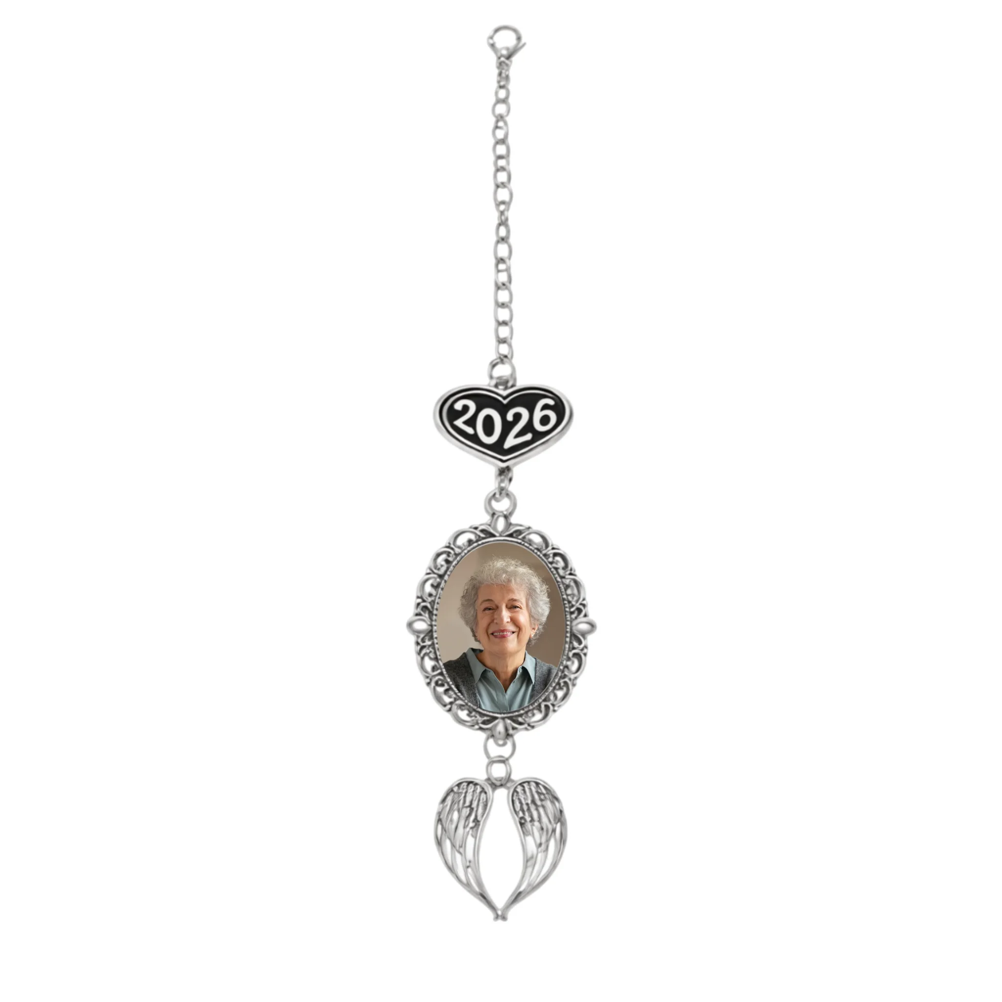 Method: One-sided UV printing on the photo charm, with engraving on the heart charm.