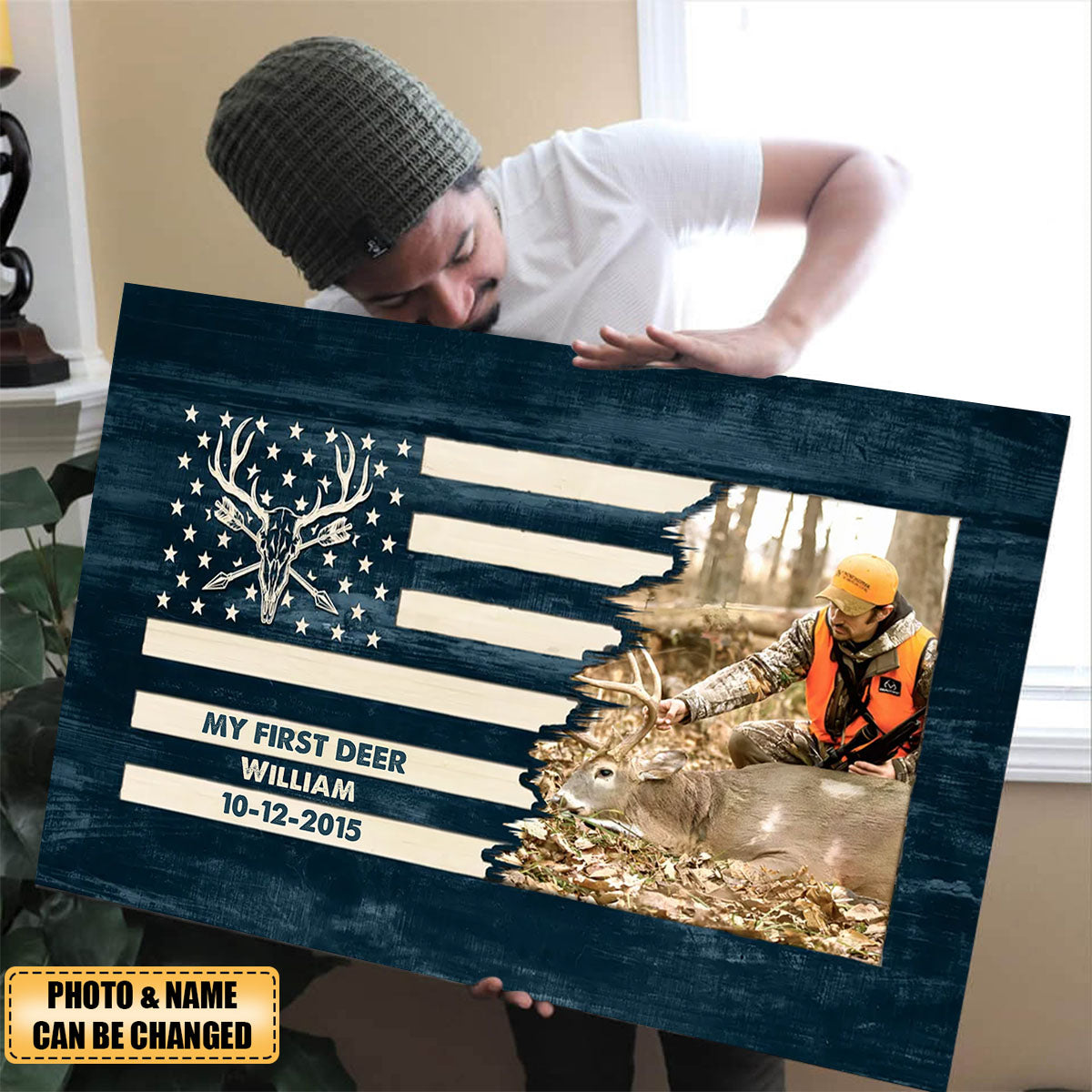 This personalized, hunter-specific deer print photographic flag canvas is the ideal gift for anyone who loves outdoor adventures and hunting.