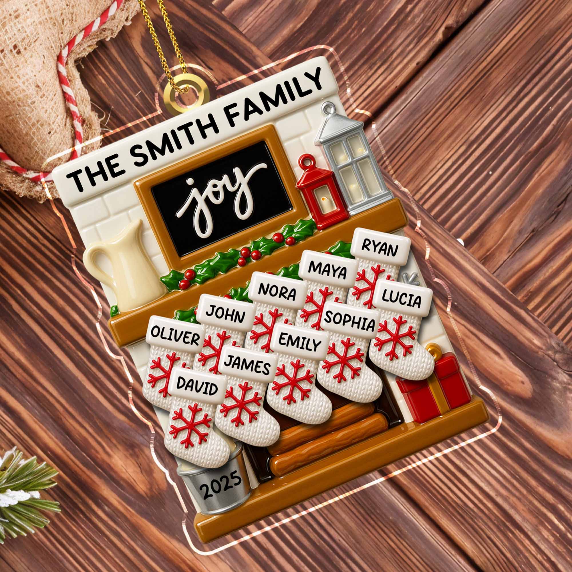 Joy to the World, Stockings By the Fireplace, Personalized Custom Acrylic Ornament