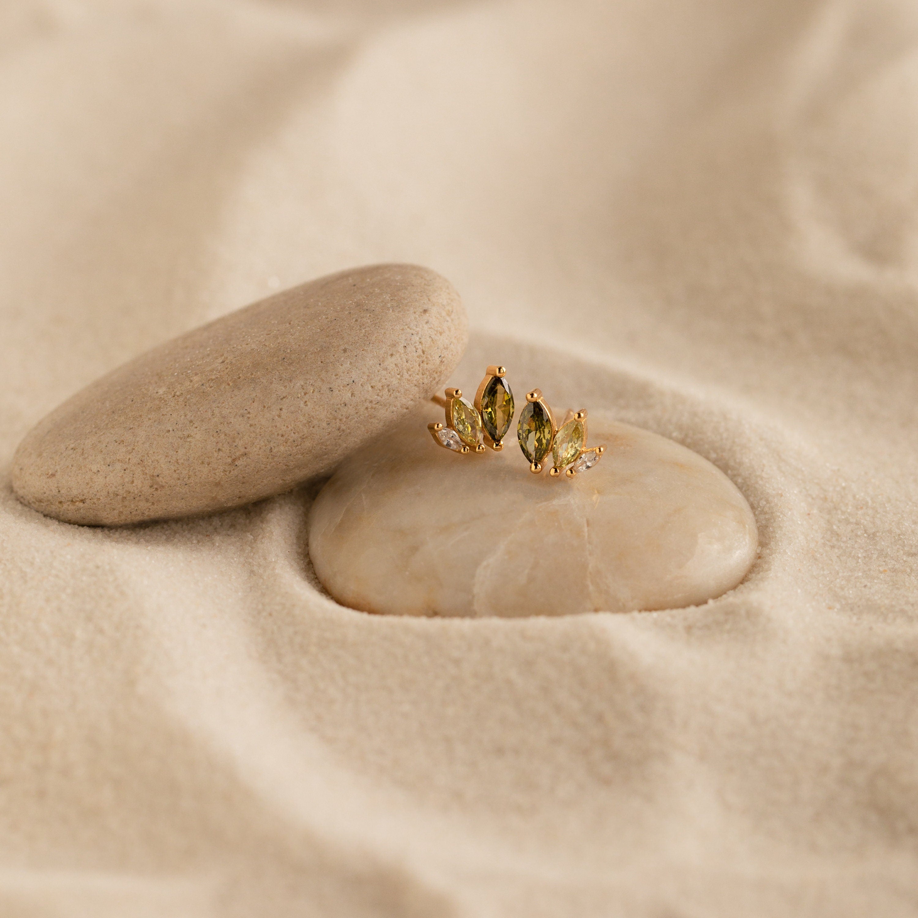 Inspired by the timeless beauty of the olive leaf — a symbol of peace, growth, and resilience — these minimalist stud earrings are the perfect blend of nature and elegance. Featuring delicate green crystal accents, they add a subtle sparkle to any outfit, whether you're dressing up or keeping it casual.