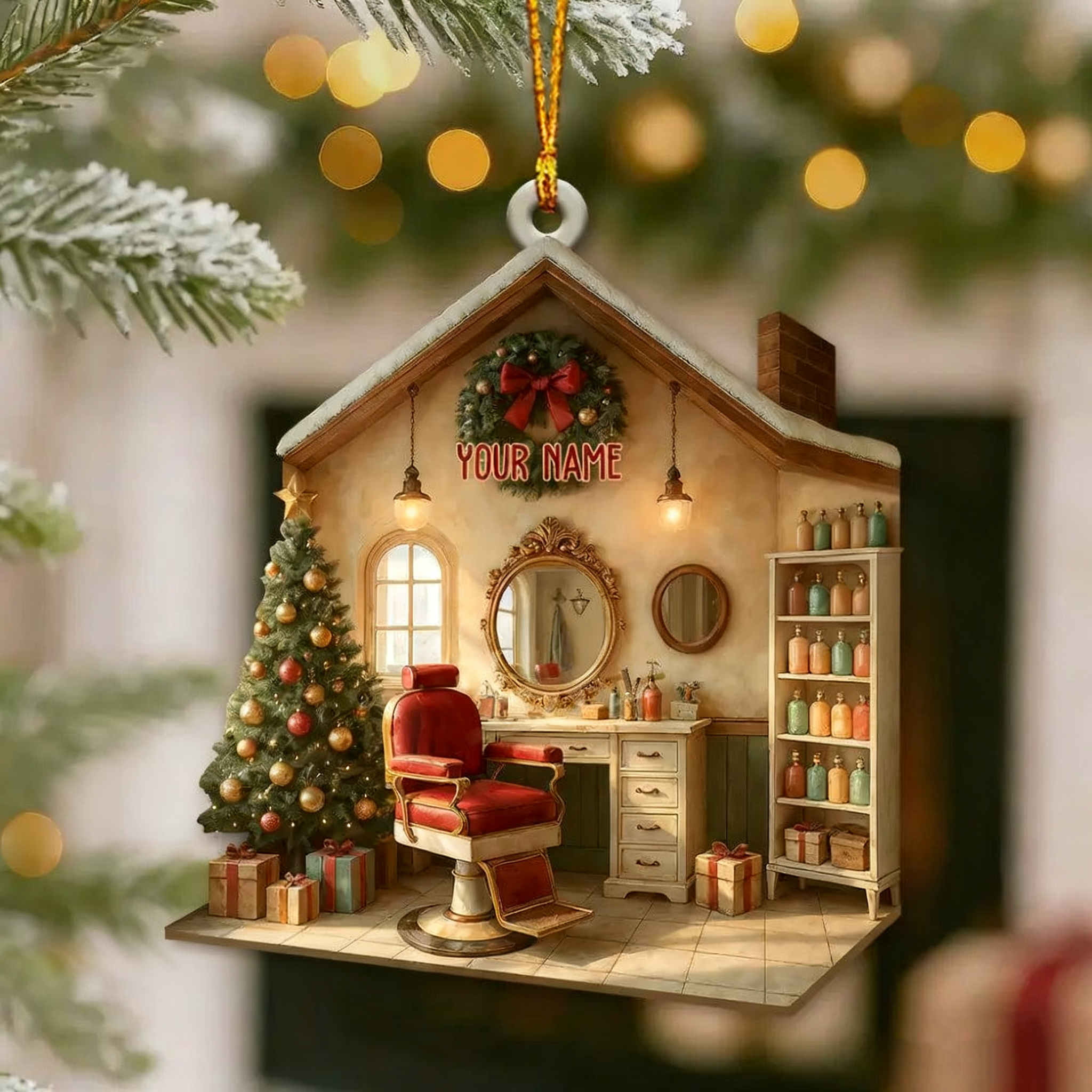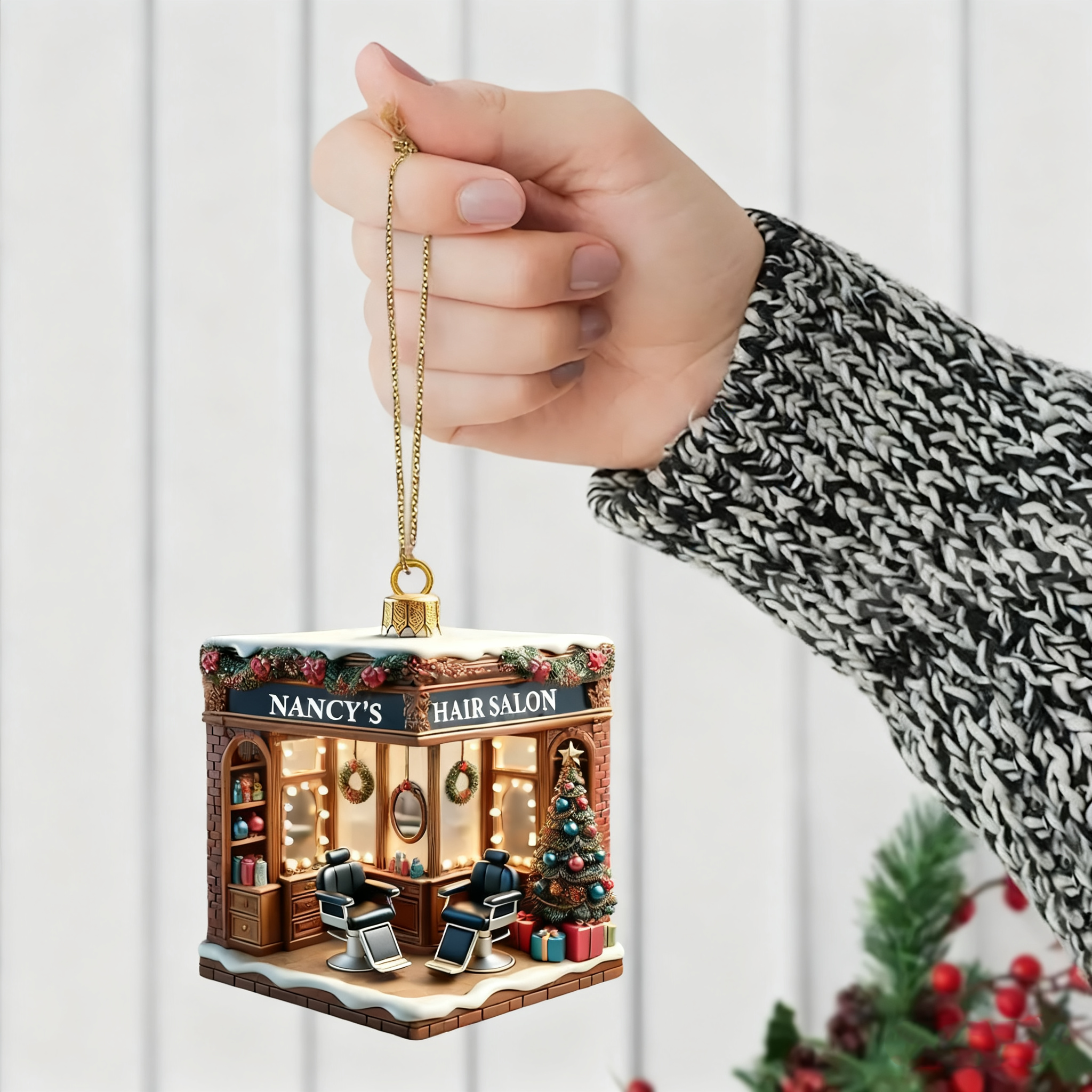 Personalized Custom Name Hair Salon Ornament, Hair Salon Christmas Decoration
