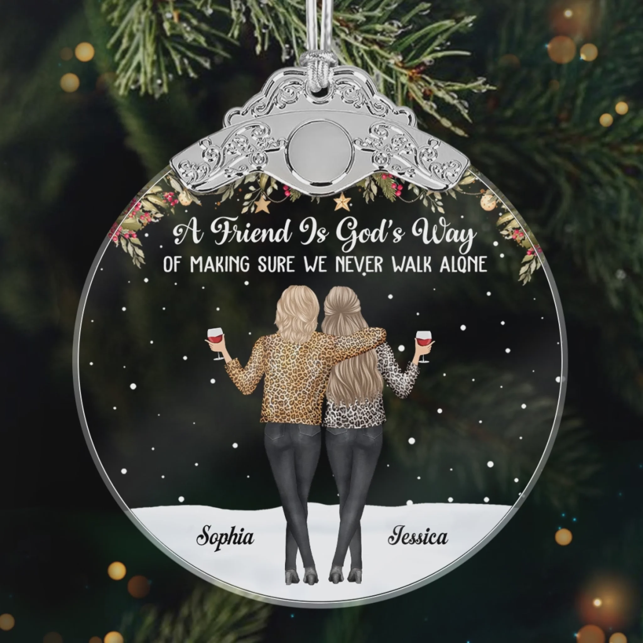 Celebrate the beautiful bond of friendship! Our custom glass ornament is a heartfelt Christmas or Birthday gift for women, besties, and sisters. Engraved with names, it's a timeless keepsake.
