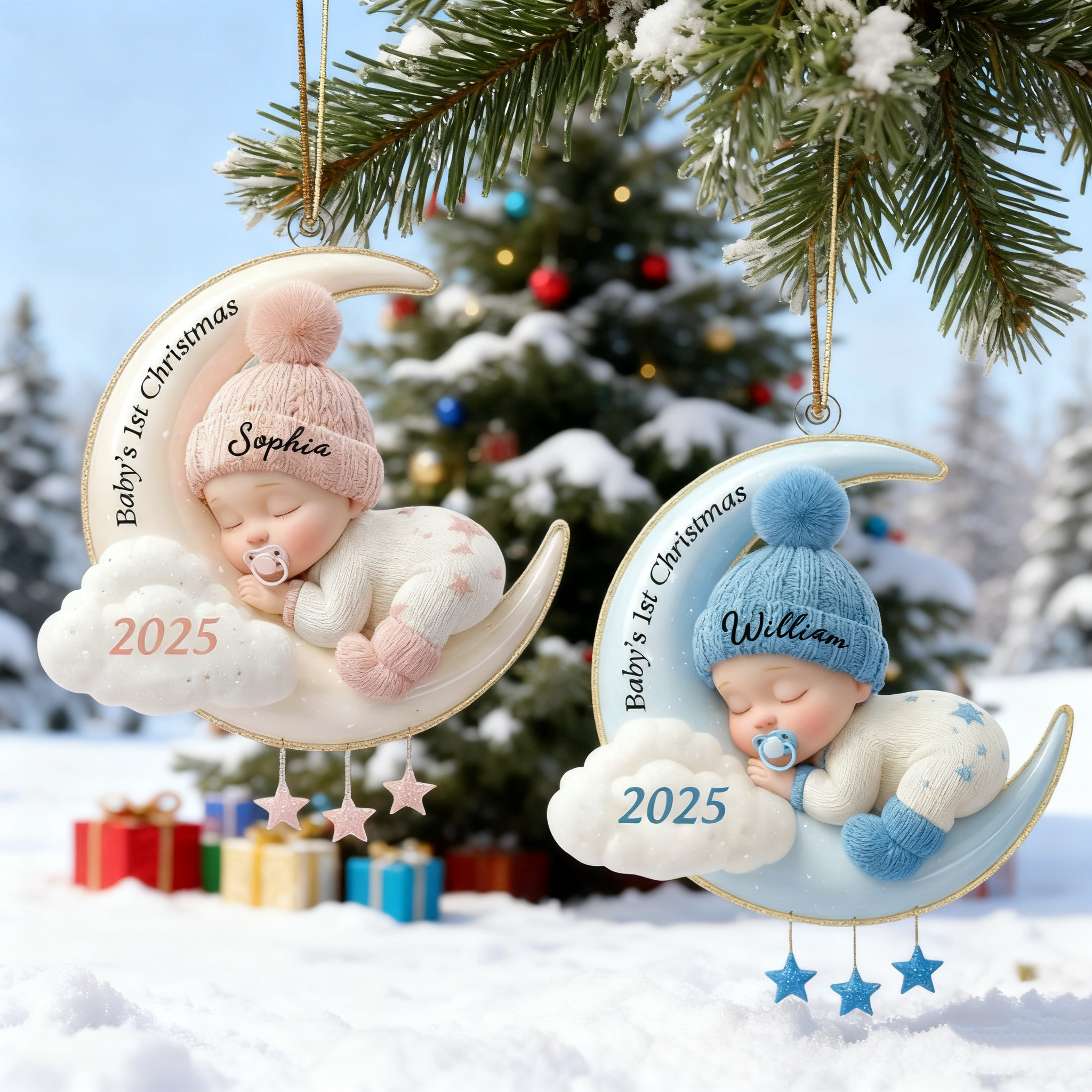 Personalized Baby's First Christmas Moon Acrylic Keepsake Ornament