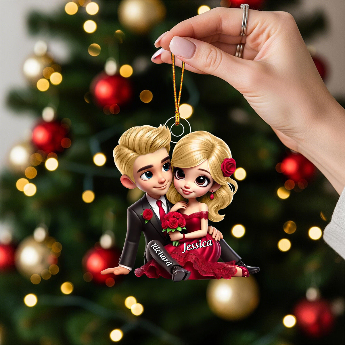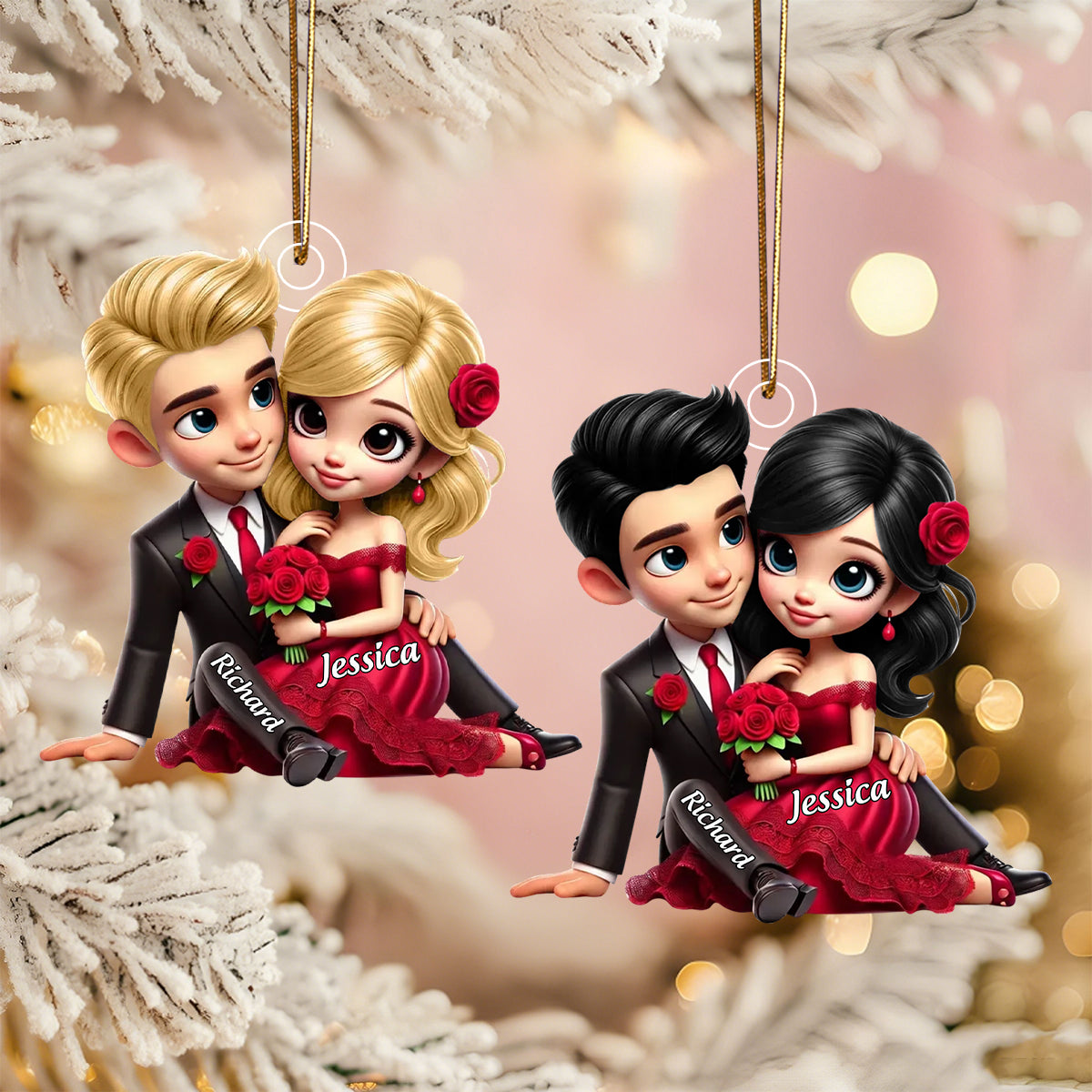 Capture your romance in a timeless keepsake! This stunning acrylic ornament features a couple nestled among roses – personalized with your names to celebrate your unique love story.